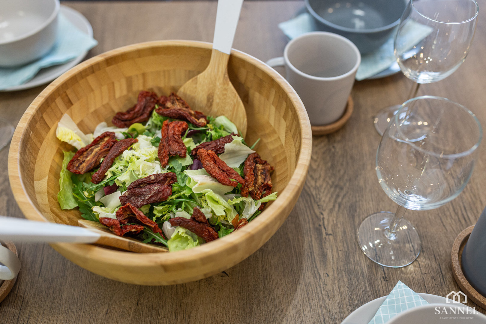 Składa się z salonu z aneksem kuchennym, wygospodarowaną częścią jadalnianą , sypialni oraz łazienki. Aneks kuchenny wyposażony został we wszystkie niezbędne akcesoria oraz sprzęty AGD potrzebne do przygotowania posiłków takie jak mikrofala z funkcją pieczenia, toster. Salon z oknami panoramicznymi, połączony z aneksem kuchennym posiada miejsce do spożywania posiłków, a także odpoczynku jak również daje możliwość spania dzięki rozkładanej sofie. W salonie znajduje się płaski TV z wszystkimi kanałami kablowymi w różnych językach. Z salonu można bezpośrednio wyjść na przestronny taras gdzie znajduje się wypoczynek ogrodowy.Sypialnia posiada duże podwójne łóżko, przestronną szafę oraz szafki nocne. Z tego pomieszczenia także bezpośrednio przemieścimy się na taras. Łazienka apartamentu Grey Sand, została zaopatrzona w prysznic,toaletę oraz umywalkę wraz z szufladami.