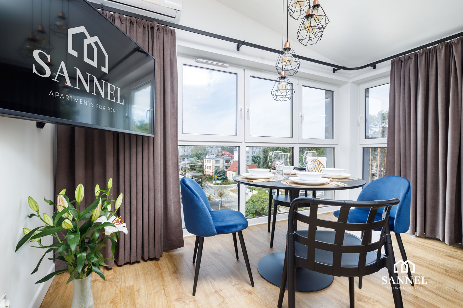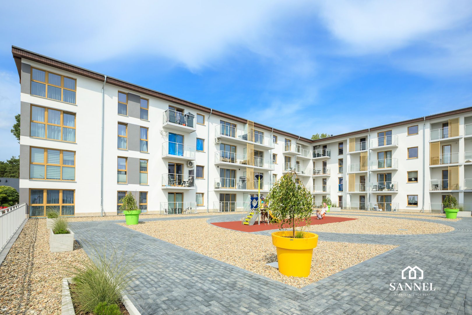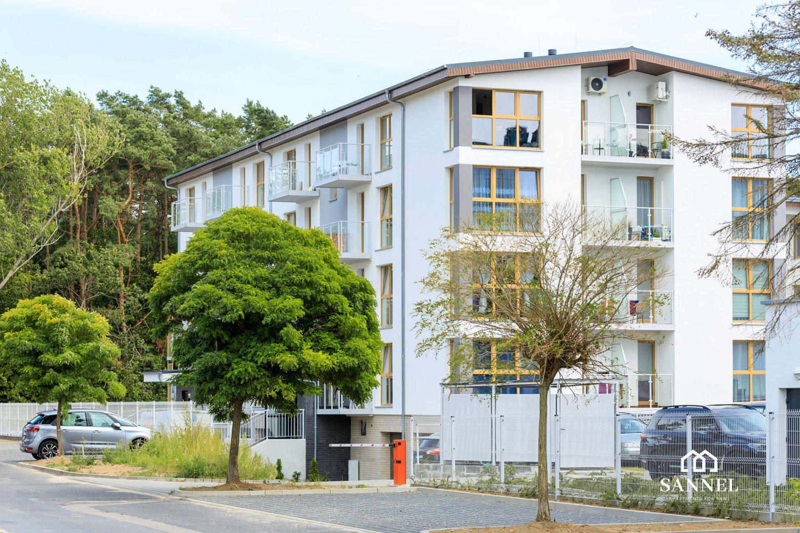 Apartament do wynajęcia Golden Dune mieści się w inwestycji Słoneczne Tarasy w Dziwnówku. Mieści się on w bliskim sąsiedztwie sosnowego lasu i zaledwie 150 m od szerokiej plaży.