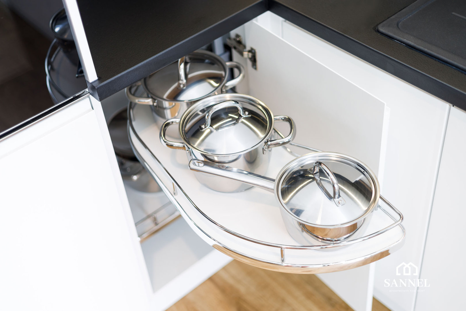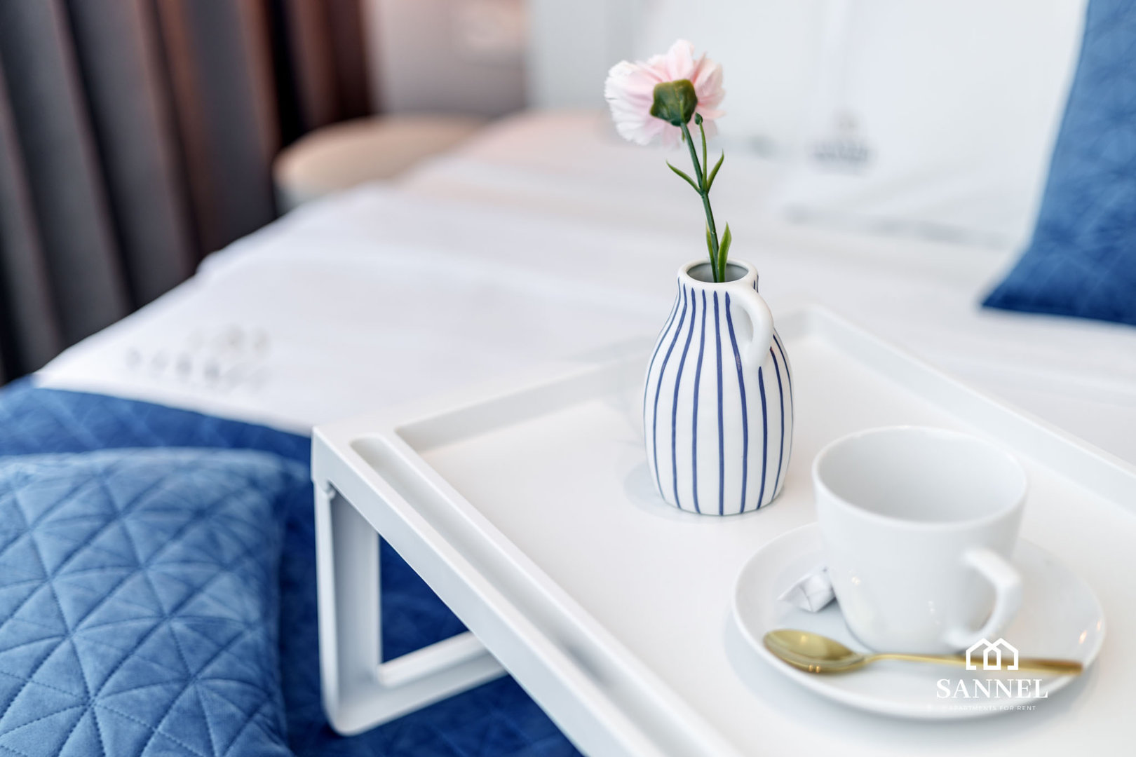 Golden Dune jest to zupełnie NOWY apartament dostosowany do komfortowego wypoczynku do czterech osób. Składa się on z salonu z aneksem kuchennym, dwóch sypialni oraz łazienki. Przestronny salon posiada miejsce do spożywania posiłków, narożną sofę, stolik oraz TV LED z dostępem do kanałów w różnych językach. Duży aneks kuchenny posiada wszystkie niezbędne akcesoria i sprzęty, takie jak piekarnik, mikrofalówkę, zmywarkę, dużą lodówkę, zamrażarkę, ekspres do kawy, czajnik elektryczny potrzebne do swobodnego przygotowania posiłków. Z tej części apartamentu skorzystać można z klimatycznego balkonu, który został wyposażony w komplet mebli.