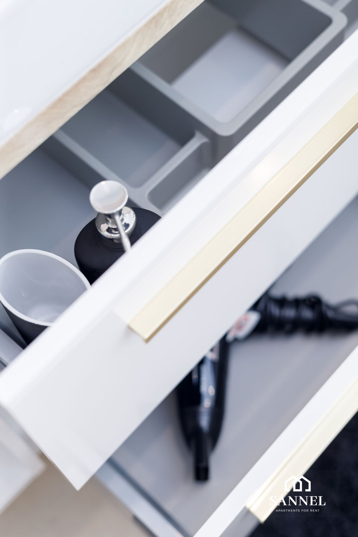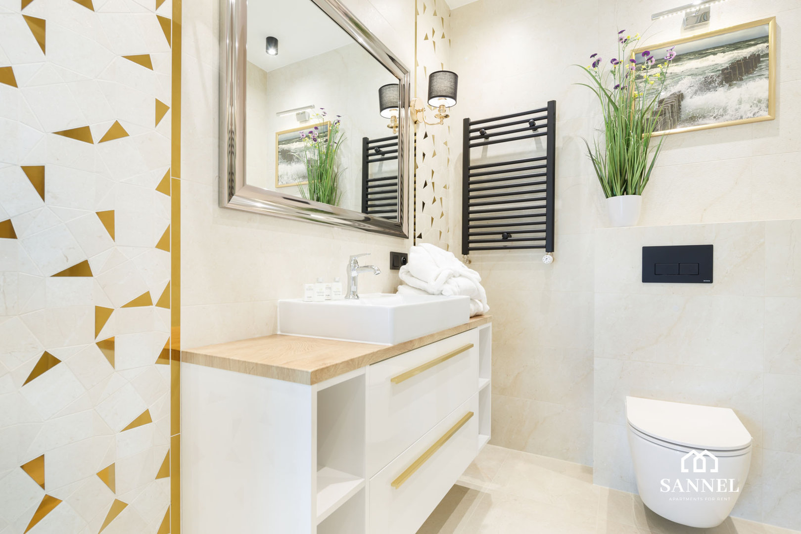 Wszystkie pomieszczenia w Golden Dune zaaranżowane zostały z myślą o najbardziej wymagających klientach. Niepodważalnym jest z pewnością fakt, iż dzięki usytuowaniu na ostatnim piętrze i dużym oknom apartament daje poczucie spokoju i prywatności.