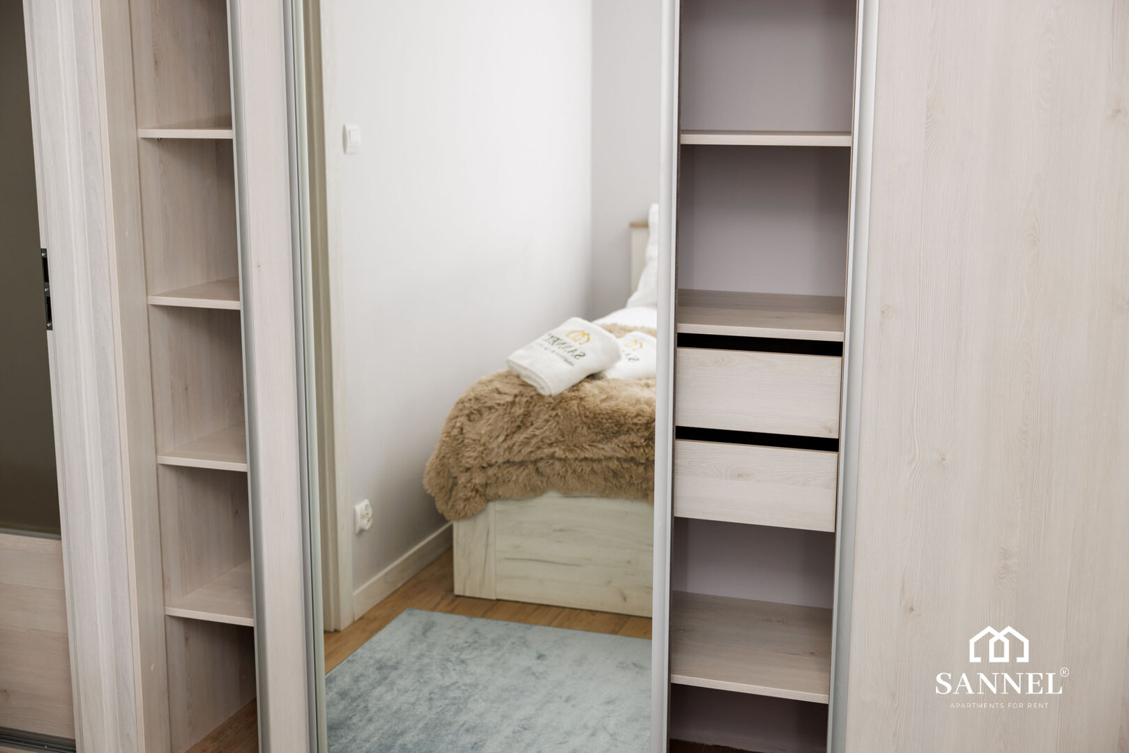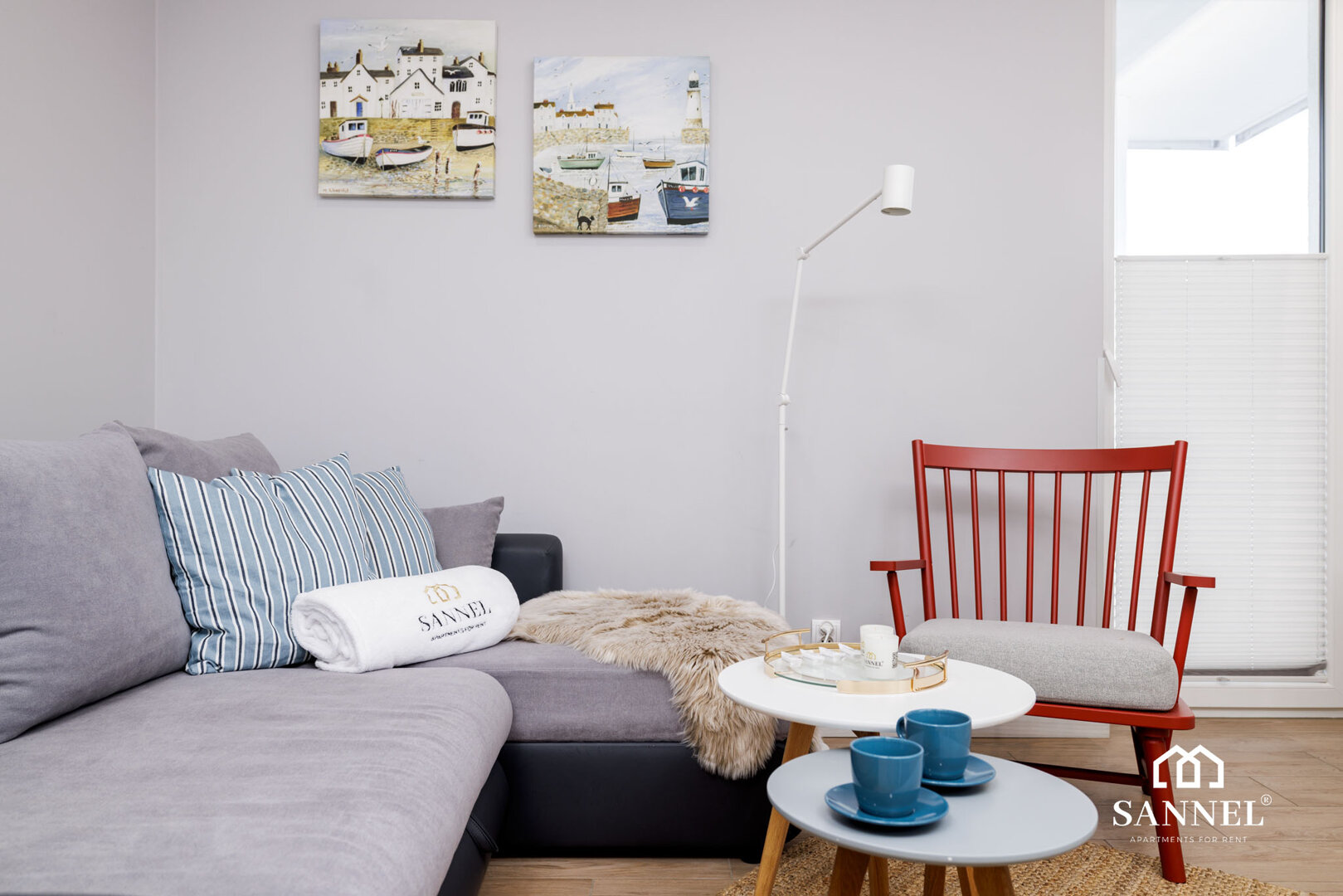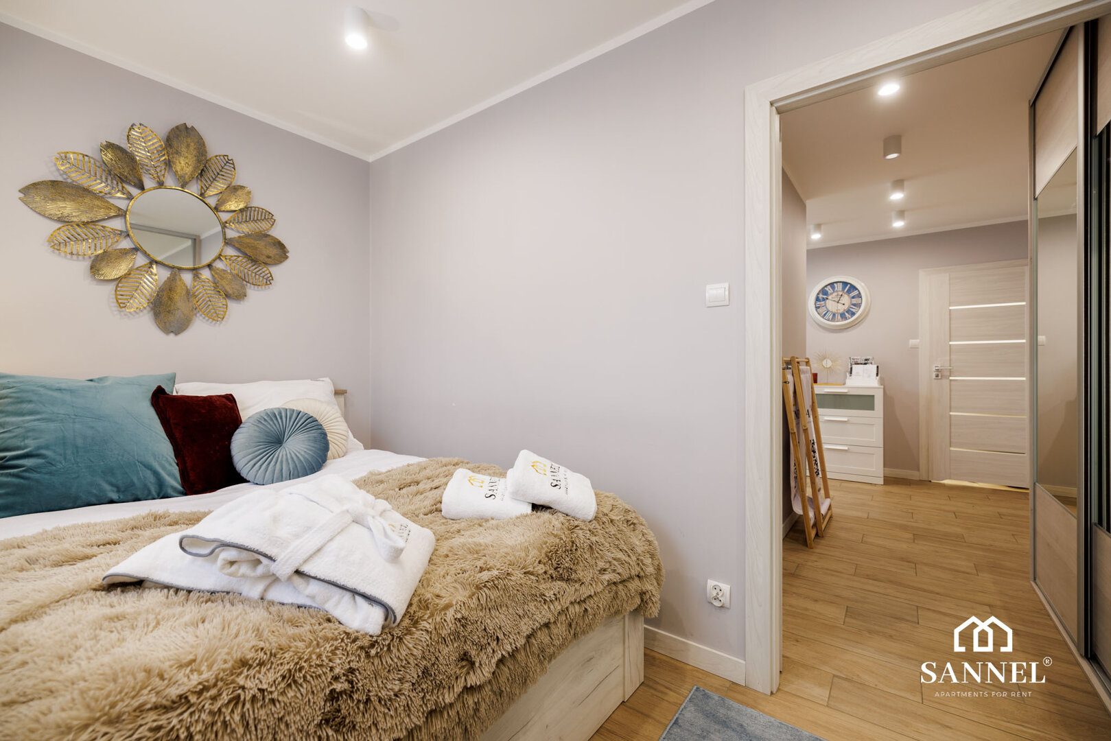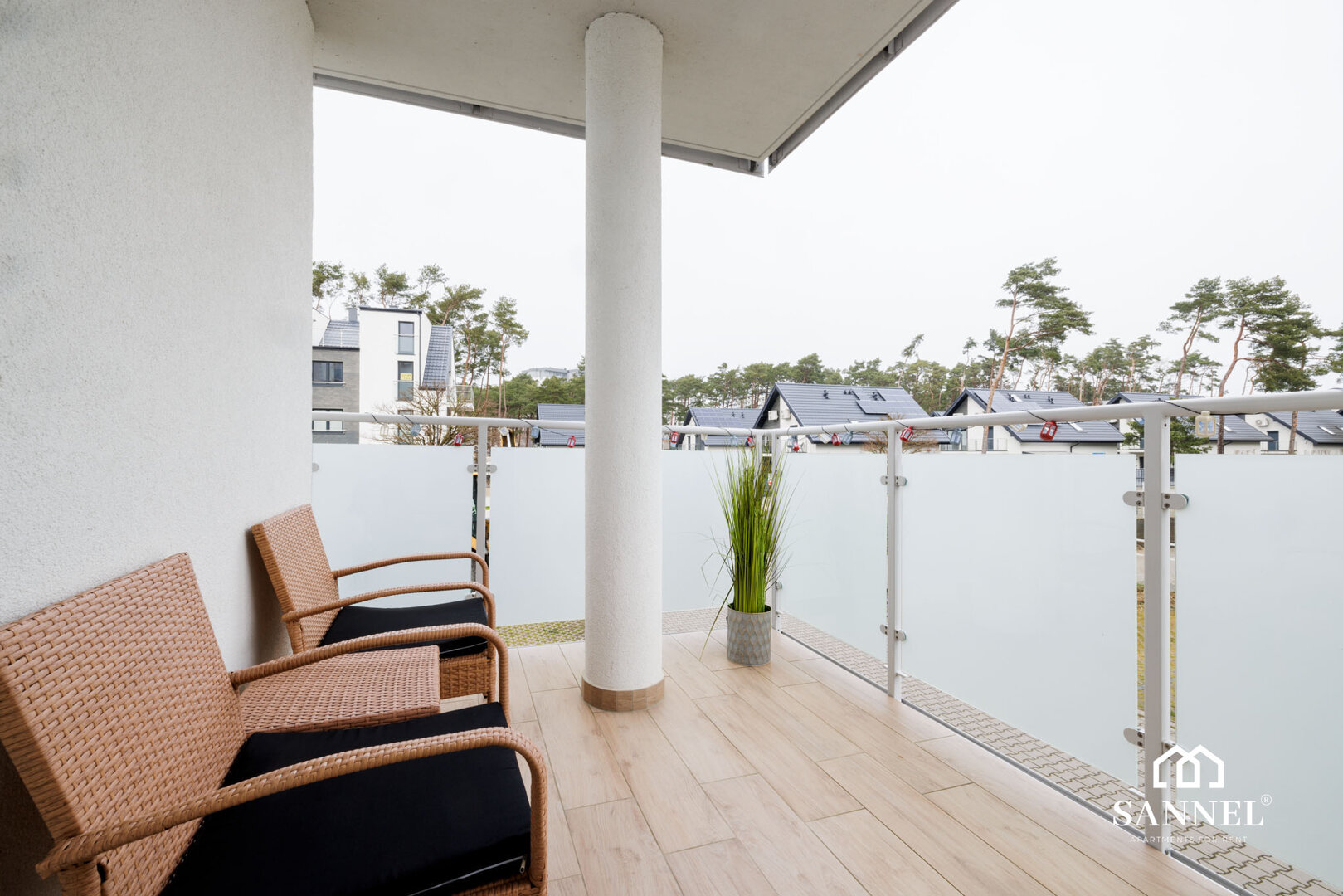 LightHouse to mimo parametrów,przestronny a zarazem bardzo komfortowy apartament przystosowany do czterech osób lub dwóch dorosłych gości i trójki małych dzieci.Klimatyczny apartament składa się z salonu z aneksem kuchennym z wydzielonym miejscem do spożywania posiłków, sypialni,łazienki oraz dużego,zadaszoengo balkonu. Salon wyposażony został w sofę z funkcją spania, wygodny fotel, stolik kawowy a także TV z płaskim ekranem z dostępem do kanałów w różnych językach, internetu oraz platform streamingowych. Z tego miejsca udać się można na balkon, na którym znajduje się komplet mebli. Aneks kuchenny apartamentu LightHouse wyposażony został we wszystkie potrzebne sprzęty AGD takie jak toster, czajnik elektryczny, ekspres do kawy, płytę indukcyjną a także akcesoria, potrzebne do przygotowania posiłków.Przestronna i bardzo przytulna sypialnia posiada duże łóżko małżeńskie (160x200),szafkę nocną oraz bardzo pojemną szafę.Łazienka wyposażona została w przestronny prysznic, umywalkę z blatem i szafką, podświetlane lustro,toaletę a także pralkosuszarkę.W korytarzu apartamentu znajduje się także oddzielna szafa z dużą ilością miejsca do przechowywania.