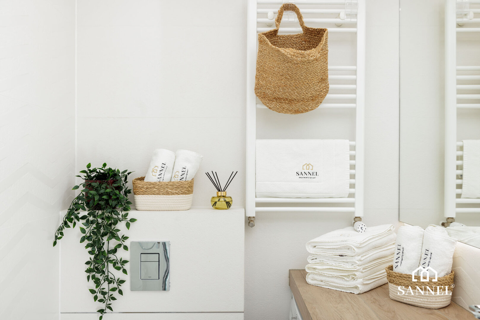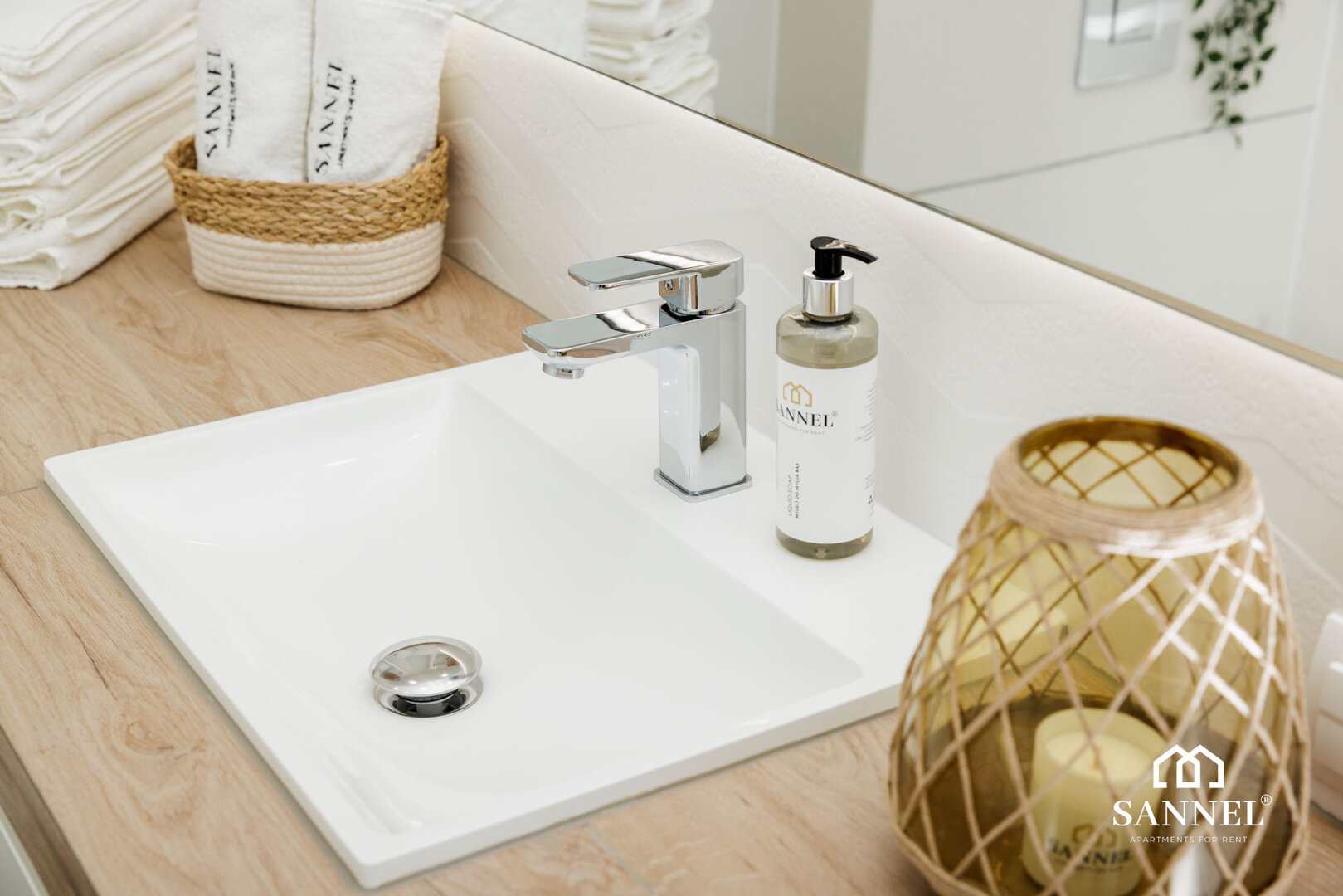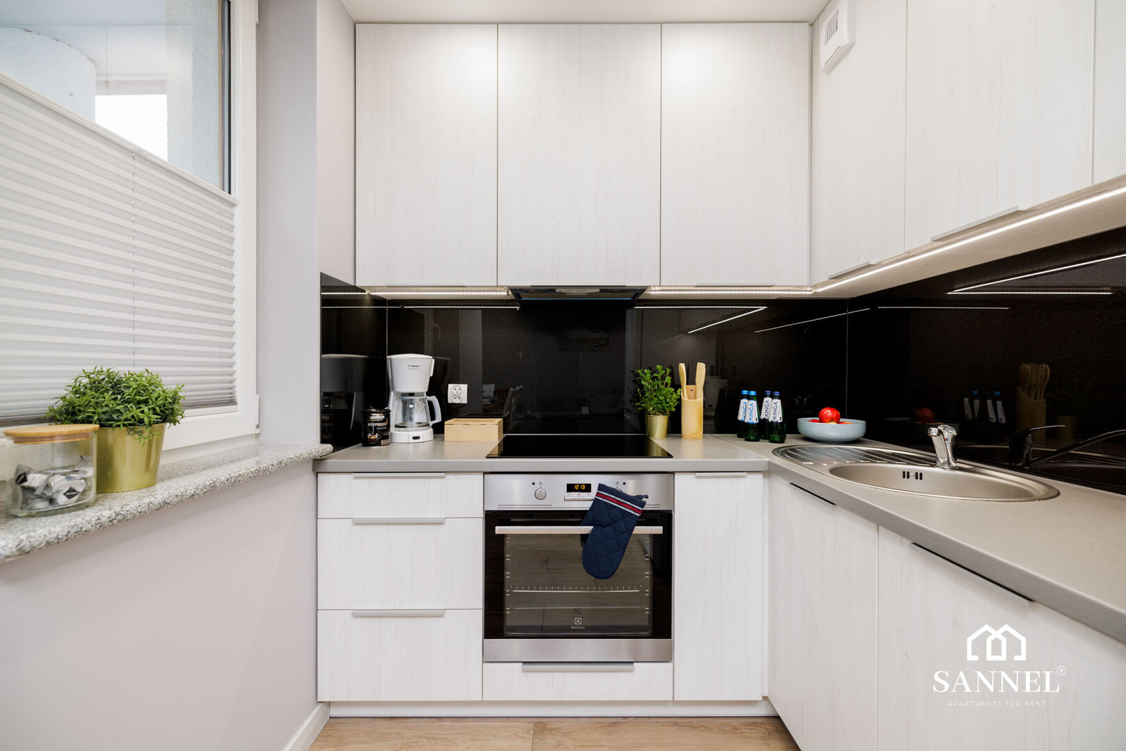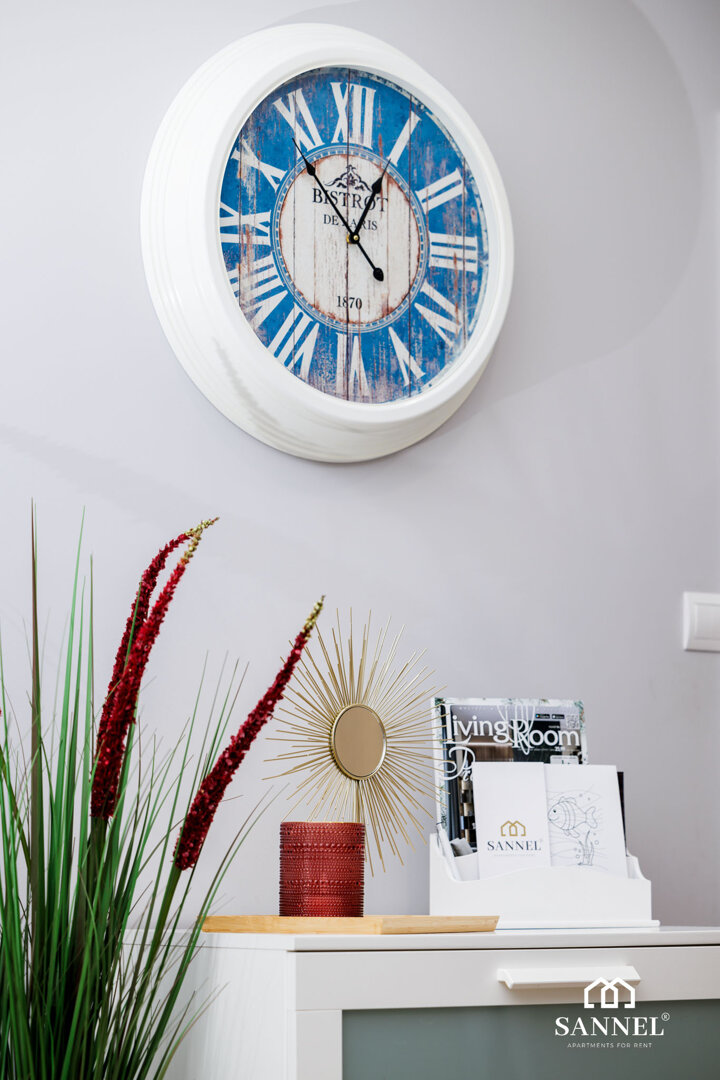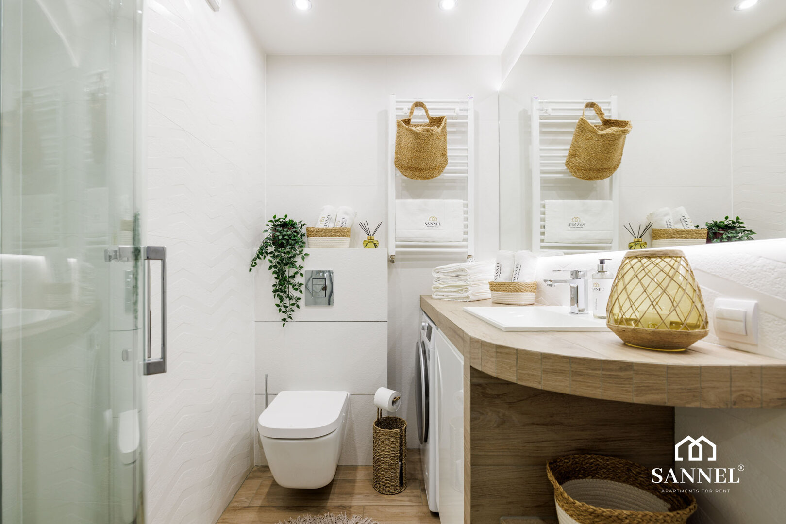 LightHouse to mimo parametrów,przestronny a zarazem bardzo komfortowy apartament przystosowany do czterech osób lub dwóch dorosłych gości i trójki małych dzieci.Klimatyczny apartament składa się z salonu z aneksem kuchennym z wydzielonym miejscem do spożywania posiłków, sypialni,łazienki oraz dużego,zadaszoengo balkonu. Salon wyposażony został w sofę z funkcją spania, wygodny fotel, stolik kawowy a także TV z płaskim ekranem z dostępem do kanałów w różnych językach, internetu oraz platform streamingowych. Z tego miejsca udać się można na balkon, na którym znajduje się komplet mebli. Aneks kuchenny apartamentu LightHouse wyposażony został we wszystkie potrzebne sprzęty AGD takie jak toster, czajnik elektryczny, ekspres do kawy, płytę indukcyjną a także akcesoria, potrzebne do przygotowania posiłków.Przestronna i bardzo przytulna sypialnia posiada duże łóżko małżeńskie (160x200),szafkę nocną oraz bardzo pojemną szafę.Łazienka wyposażona została w przestronny prysznic, umywalkę z blatem i szafką, podświetlane lustro,toaletę a także pralkosuszarkę.W korytarzu apartamentu znajduje się także oddzielna szafa z dużą ilością miejsca do przechowywania.