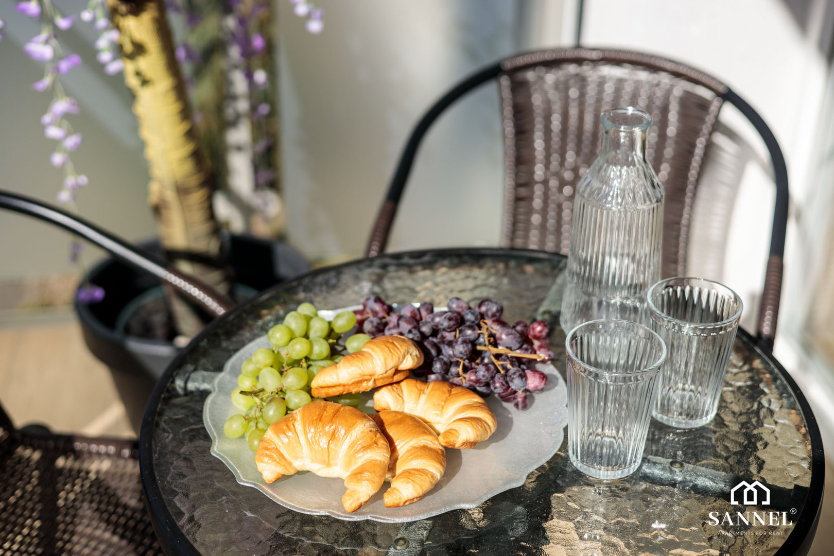 Mood Sea składa się z salonu z aneksem kuchennym, sypialni oraz łazienki. Salon wyposażony został w rozkładaną sofę, stolik kawowy, wygodny fotel na biegunach, płaski TV z dostępem do kanałów kablowych oraz platform streamingowych oraz duży stół jadalniany z krzesłami. Z tego miejsca udać się można na duży, narożny taras wyposażony w komfortowy fotel z podnóżkiem oraz komplet mebli balkonowych. Aneks kuchenny wyposażony został we wszystkie niezbędne sprzęty oraz akcesoria kuchenne, takie jak czajnik elektryczny, ekspres do kawy, płytę indukcyjną, zmywarkę, mikrofalówkę czy toster. Sypialnia posiada duże łóżko małżeńskie wraz z szafkami nocnymi i lampkami, przestronną szafę z lustrem. Łazienka apartamentu Mood Sea składa się z bezprogowej kabiny prysznicowej z odpływem liniowym, umywalki z szafką oraz toalety. Na korytarzu apartamentu znajduje się szafa do przechowywania odzieży wierzchniej. W apartamencie dostępna jest klimatyzacja.