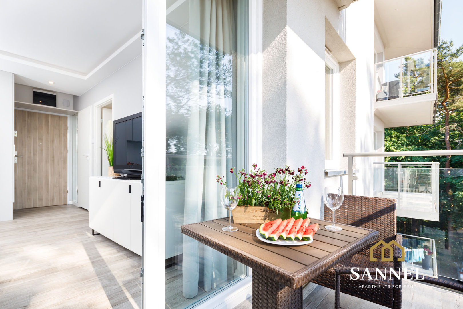 Apartament Nautical usytuowany w kompleksie Leśne Tarasy w Dziwnówku to wyznacznik odpowiedniego wypoczynku. Mieści się on na trzecim piętrze czterokondygnacyjnego budynku, od strony zachodniej. Od morza dzieli go zaledwie 150m a las sosnowy jest na wyciągnięcie ręki.