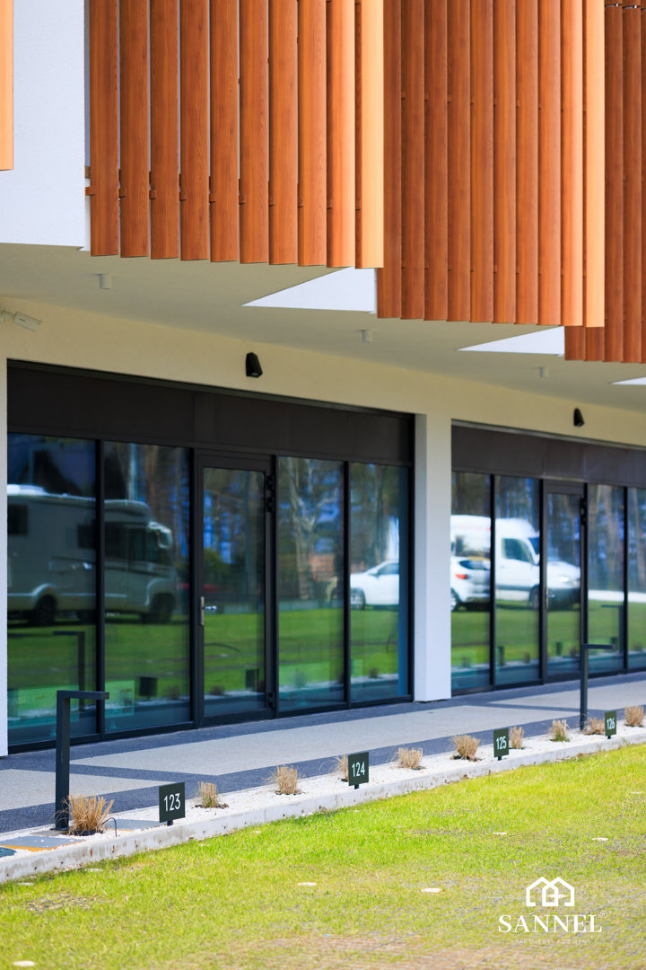 Baltic Amber mieści się na pierwszym piętrze siedmiopiętrowego apartamentowca z dostępem do windy, od strony północno wschodniej.