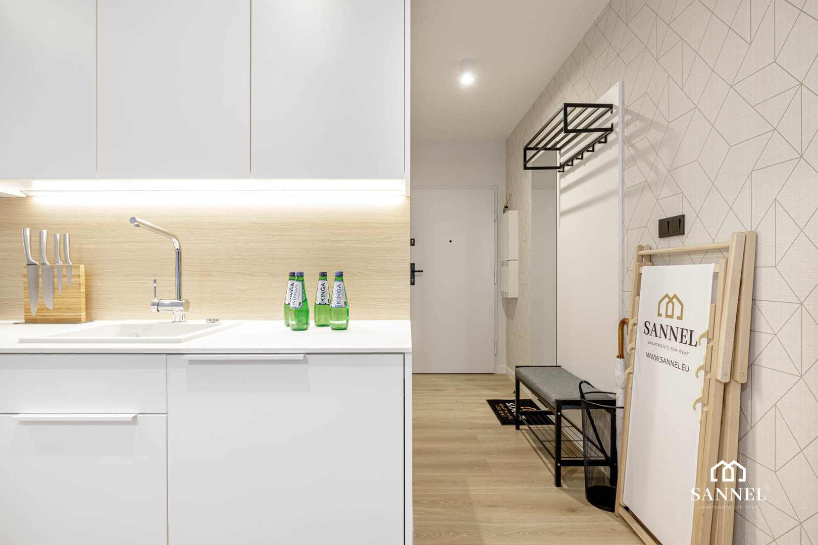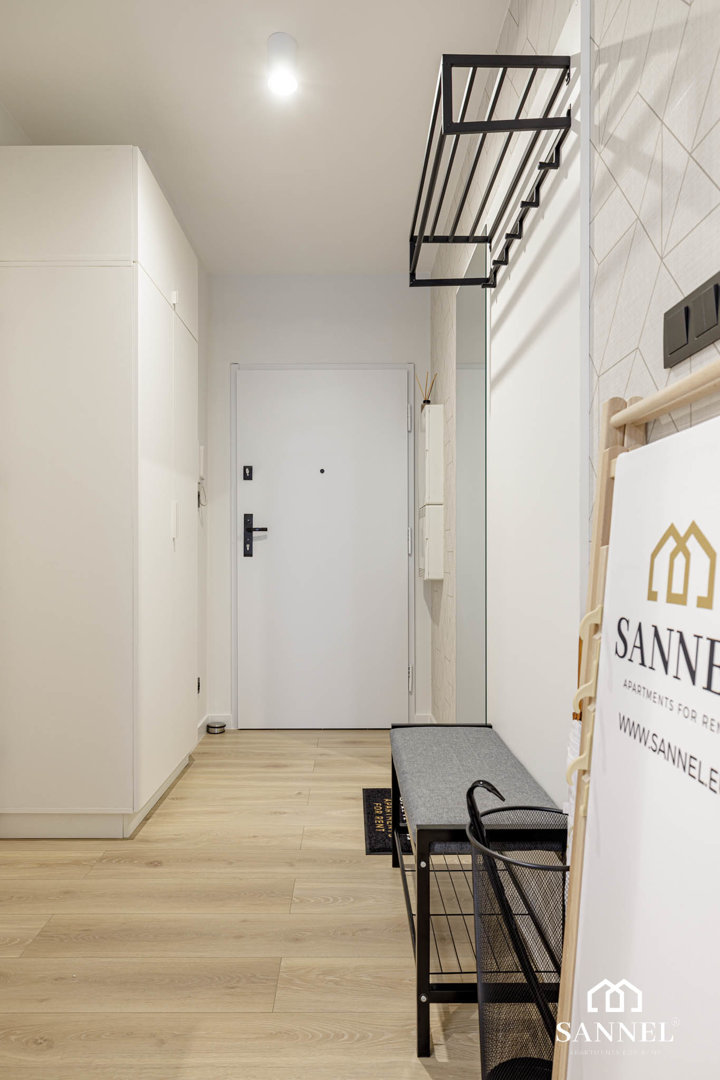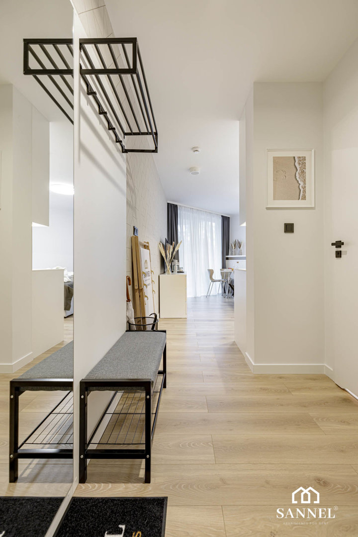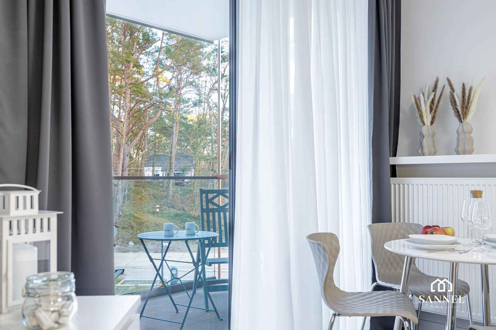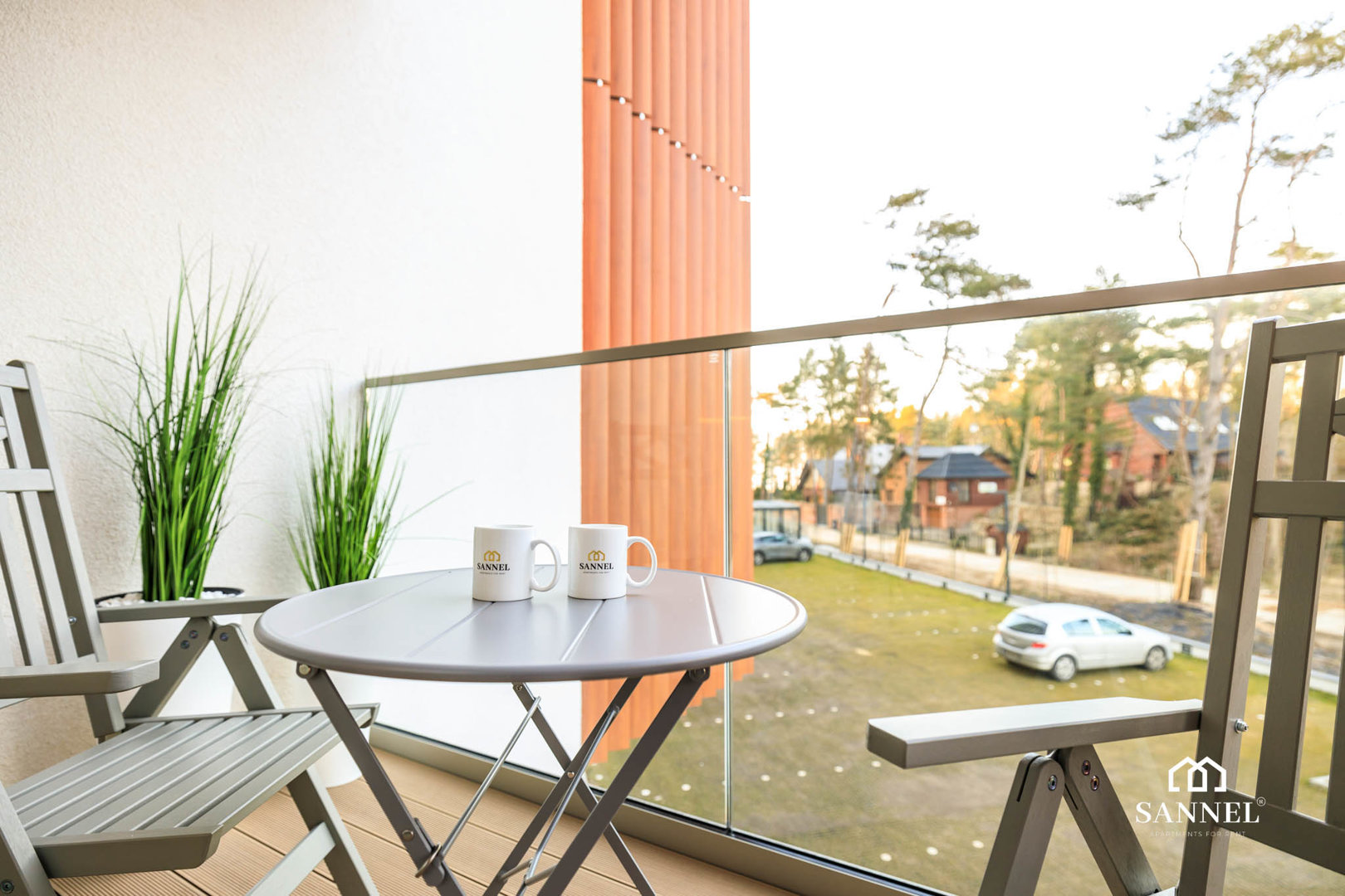 Składa się on z jednego pokoju z dużym łóżkiem sypialnianym, w pełni wyposażonego aneksu kuchennego, łazienki oraz balkonu. W pokoju apartamentu Baltic Dune, znajduje się duże łóżko sypialniane wraz z szafkami nocnymi z dostępem do gniazdek, stół z krzesłami do spożywania posiłków, komoda do przechowywania, TV LED z dostępem do kanałów w różnych językach oraz serwisów jak np.Netflix. Aneks kuchenny posiada wszystkie niezbędne akcesoria kuchenne, sprzęty AGD takie jak czajnik,toster, ekspres do kawy potrzebne do przygotowania posiłków. Przytulny balkon wyposażony został w komplet mebli wypoczynkowych. Przestronna łazienka apartamentu Baltic Dune posiada szklaną kabinę prysznicową, umywalkę oraz toaletę.W korytarzu mieści się szafa do przechowywania rzeczy, lustro a także wieszak na odzież wierzchnią a także półki na obuwie.