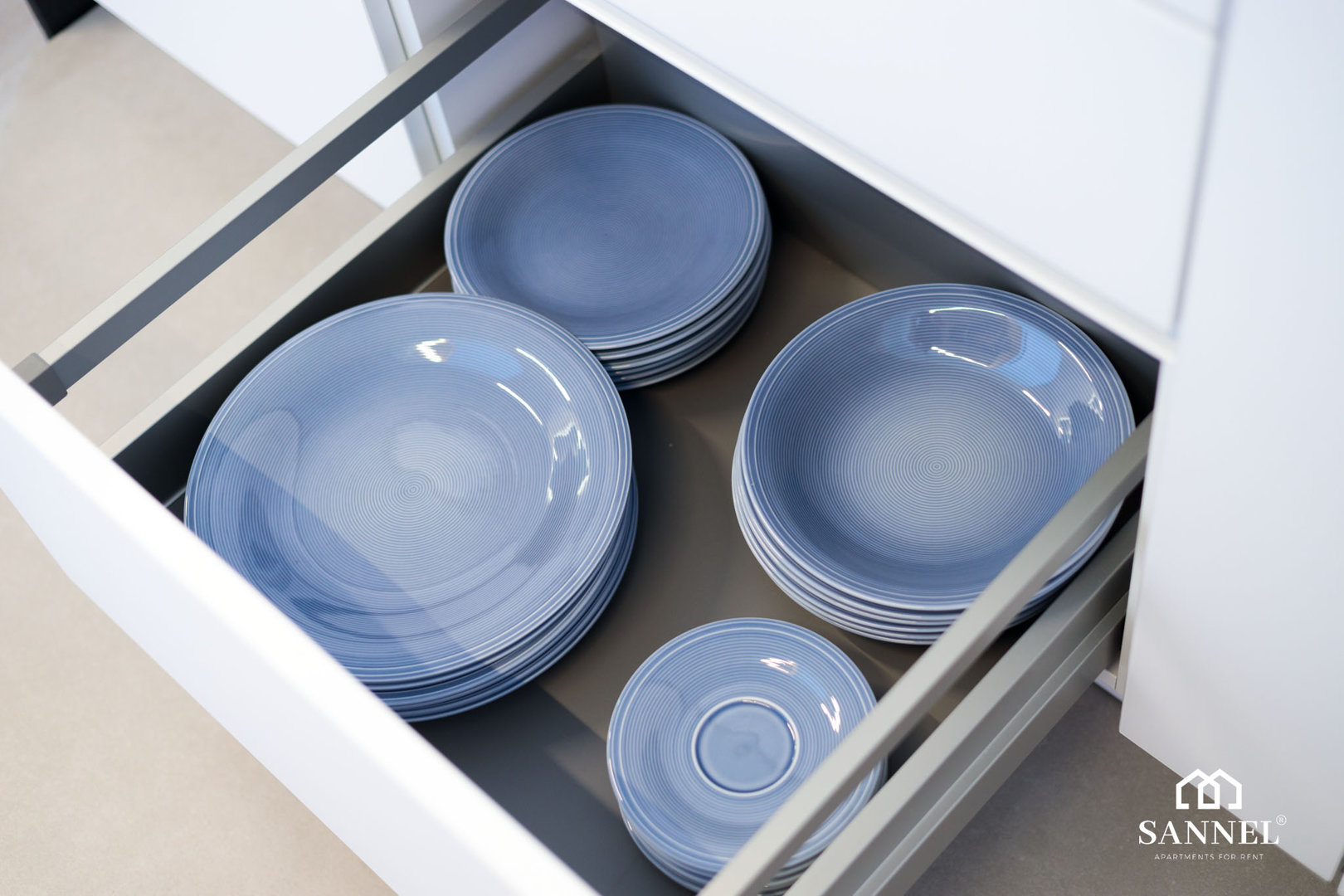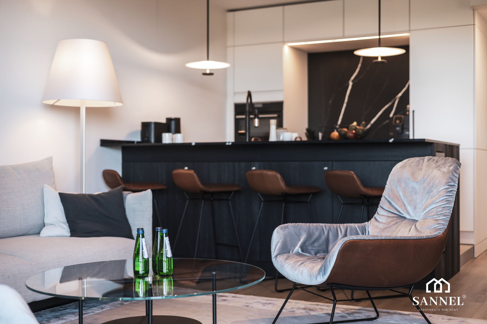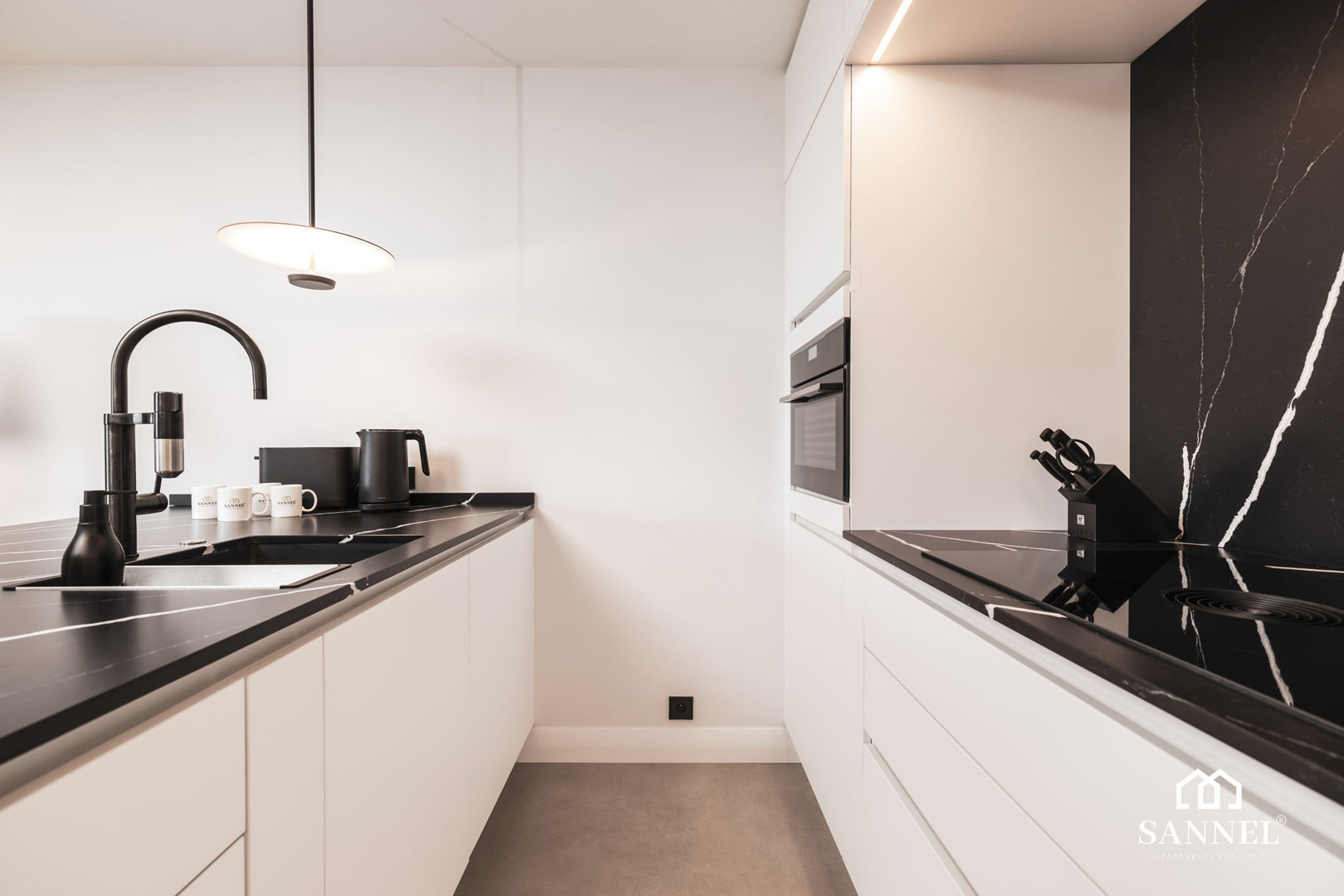 Ten wyjątkowy apartament został wyposażony w najwyższej jakości sprzęty oraz umeblowanie. Apartament Exclusive składa się z salonu z aneksem kuchennym z wydzielonym miejscem do spożywania posiłków w postaci dużej wyspy kuchennej z hokerami, sypialni, łazienki oraz dwóch balkonów z widokiem na morze. Salon wyposażony został w sofę z funkcją spania, stoliki kawowe, huśtawkę a także TV z płaskim ekranem z dostępem do kanałów w różnych językach, internetu oraz platform streamingowych. Z tego miejsca udać się można na jeden z dwóch balkonów, na którym znajduje się komplet mebli wypoczynkowych. Aneks kuchenny apartamentu Exclusive wyposażony został we wszystkie potrzebne sprzęty AGD takie jak toster, dotykowy czajnik elektryczny, ekspres do kawy, płytę indukcyjną a także lodówkę do chłodzenia napojów oraz akcesoria, potrzebne do przygotowania posiłków. Przestronna sypialnia posiada duże łóżko małżeńskie wraz z szafkami nocnymi z lampkami do czytania,pojemną szafę do przechowywania ubrań a także TV z dostępem do kanałów w różnych językach, internetu oraz platform streamingowych. Z sypialni apartamentu wyjść można na drugi balkon gdzie znajduje się także komplet mebli wypoczynkowych. W łazience znajduje się przestronny prysznic z odpływem liniowym, umywalka z blatem i szafką, podświetlane lustro,szafka z półkami, pralka oraz toaleta.
