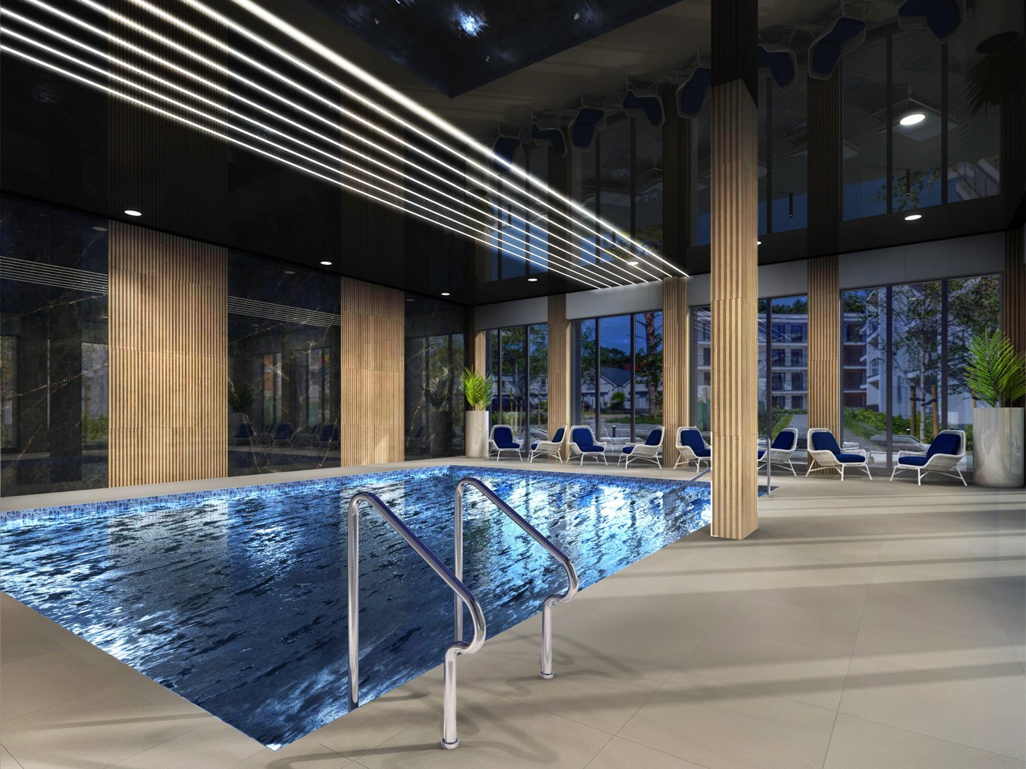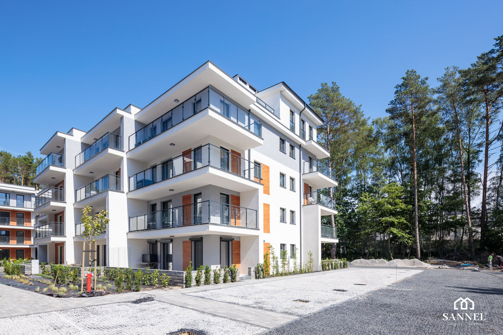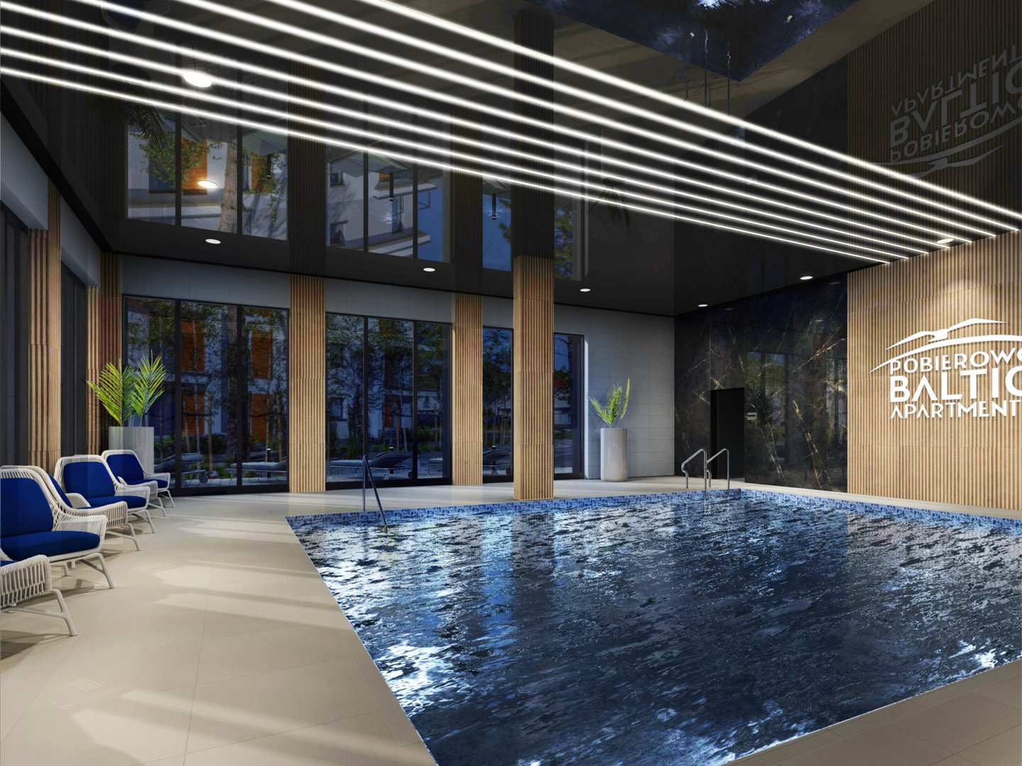 W kompleksie do dyspozycji gości pozostaną basen, plac zabaw dla dzieci, wiaty rowerowe, tenis stołowy, pokój zabaw dla dzieci.