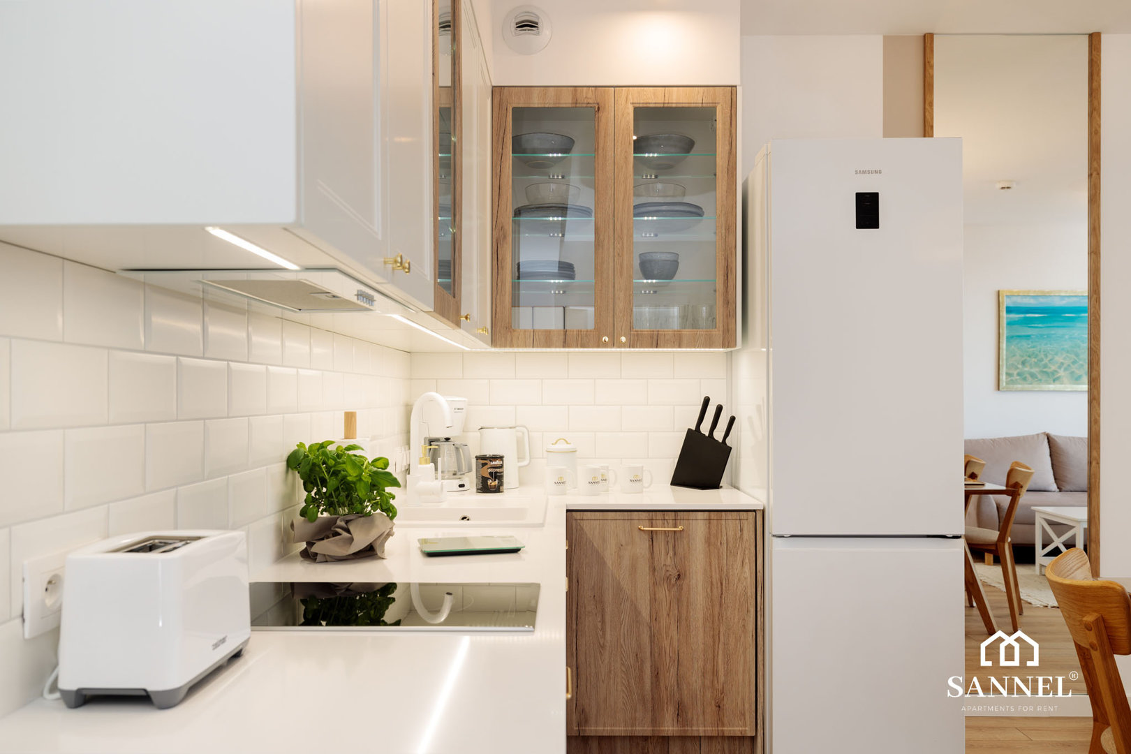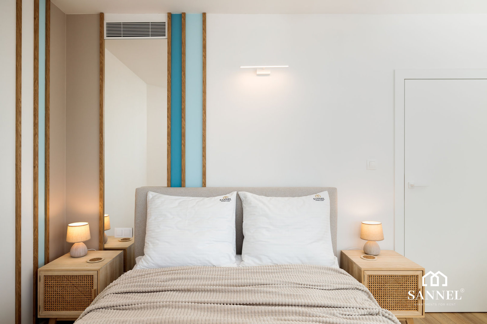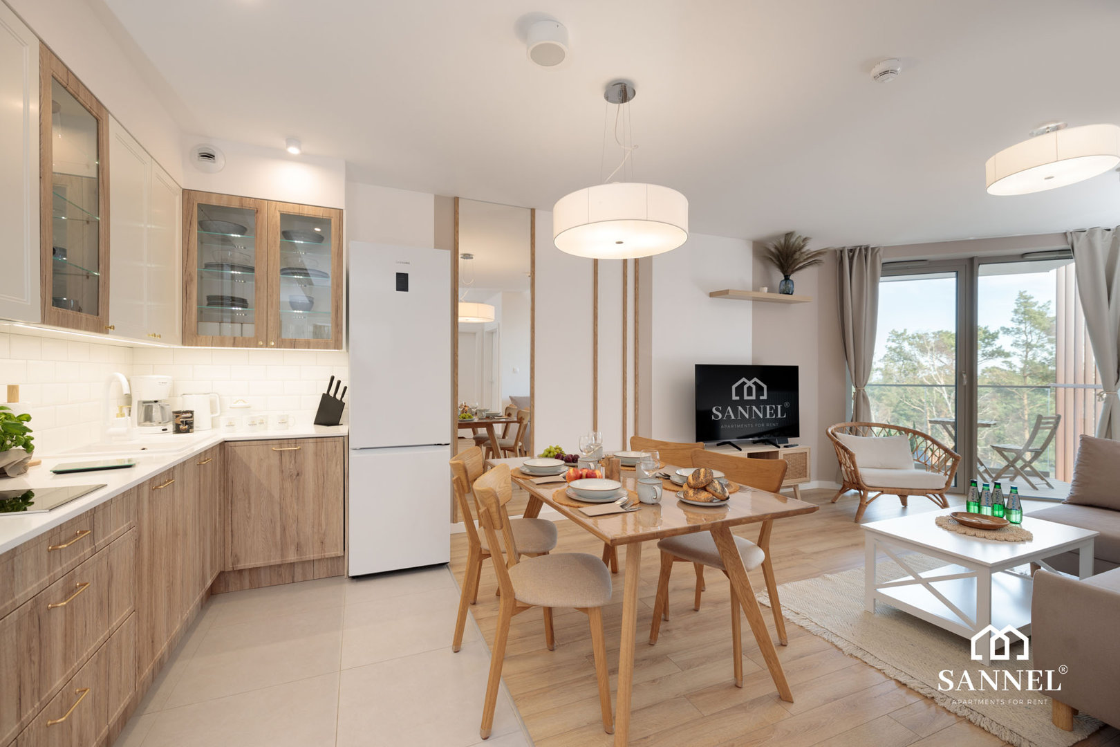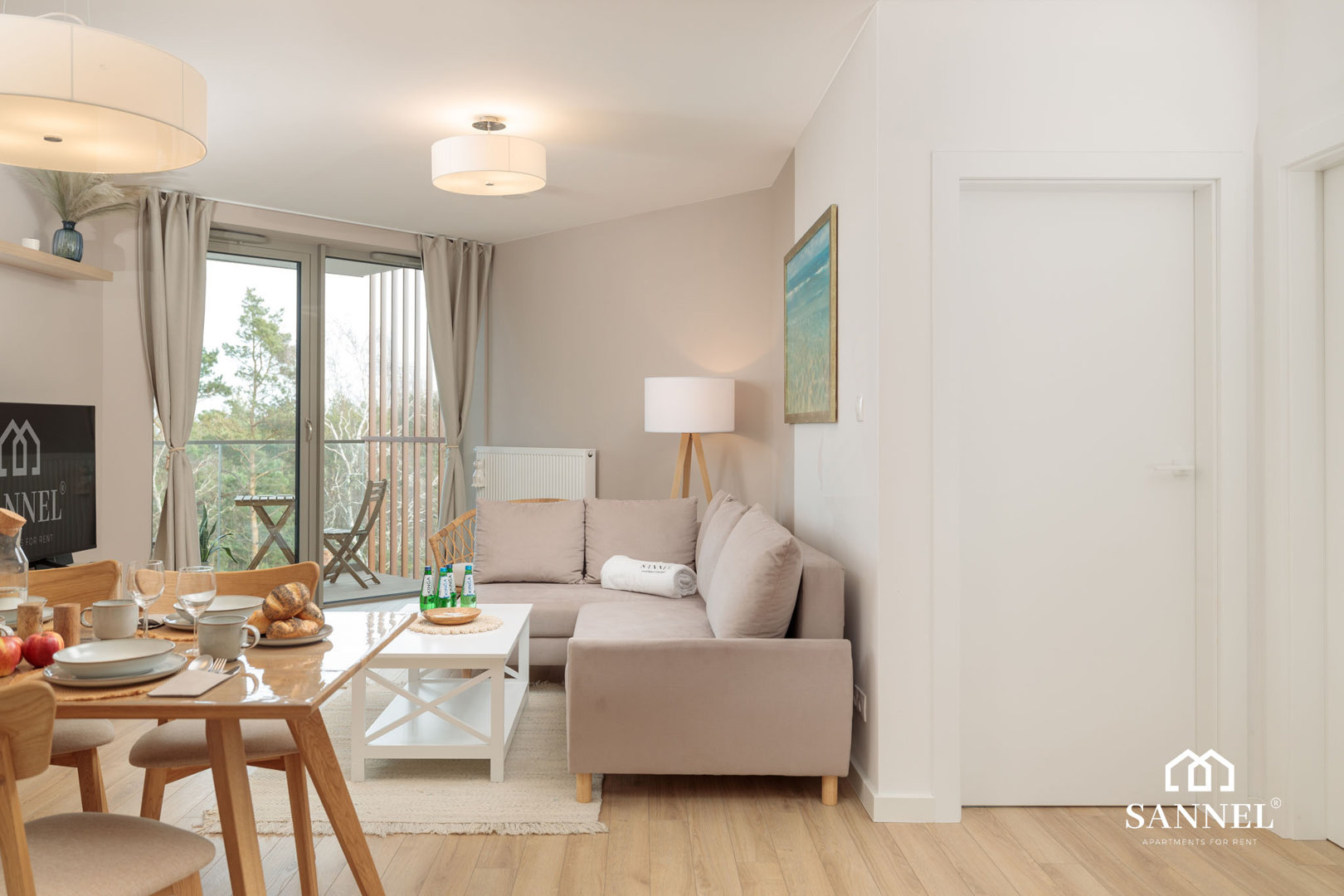 Ten unikalny a zarazem bardzo komfortowy apartament został wyposażony w najwyższej jakości sprzęty oraz umeblowanie. Apartament Lux Sea składa się z salonu z aneksem kuchennym z wydzielonym miejscem do spożywania posiłków, sypialni, garderoby,łazienki oraz dwóch balkonów z widokiem na morze. Salon wyposażony został w sofę z funkcją spania, wygodny fotel, stolik kawowy a także TV z płaskim ekranem z dostępem do kanałów w różnych językach, internetu oraz platform streamingowych. Z tego miejsca udać się można na jeden z dwóch balkonów, na którym znajduje się komplet mebli balkonowych. Aneks kuchenny apartamentu Lux Sea wyposażony został we wszystkie potrzebne sprzęty AGD takie jak toster, czajnik elektryczny, ekspres do kawy, płytę indukcyjną a także akcesoria, potrzebne do przygotowania posiłków.W aneksie umieszczona została również pralko suszarka. Przestronna i bardzo przytulna sypialnia posiada duże łóżko małżeńskie wraz z szafkami nocnymi z lampkami do czytania. Z sypialni apartamentu wyjść można na drugi balkon gdzie znajduje się komplet mebli wypoczynkowych. Z tego miejsca delektować się można pięknym widokiem na morze. Łazienka wyposażona została w przestronny prysznic z odpływem liniowym, umywalkę z blatem i szafką, podświetlane lustro oraz toaletę. W apartamencie znajduje się także oddzielna garderoba z dużą ilością miejsca do przechowywania.