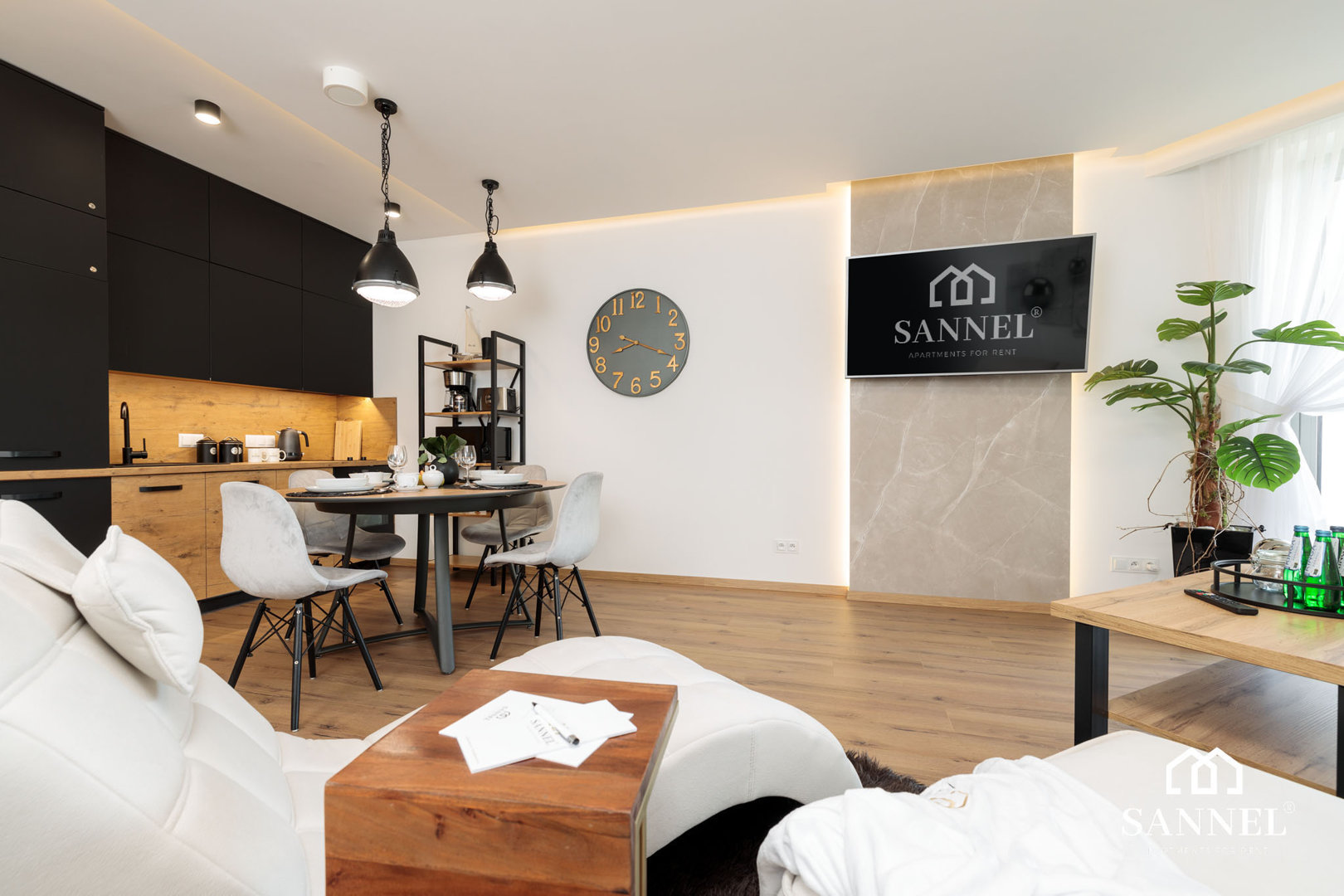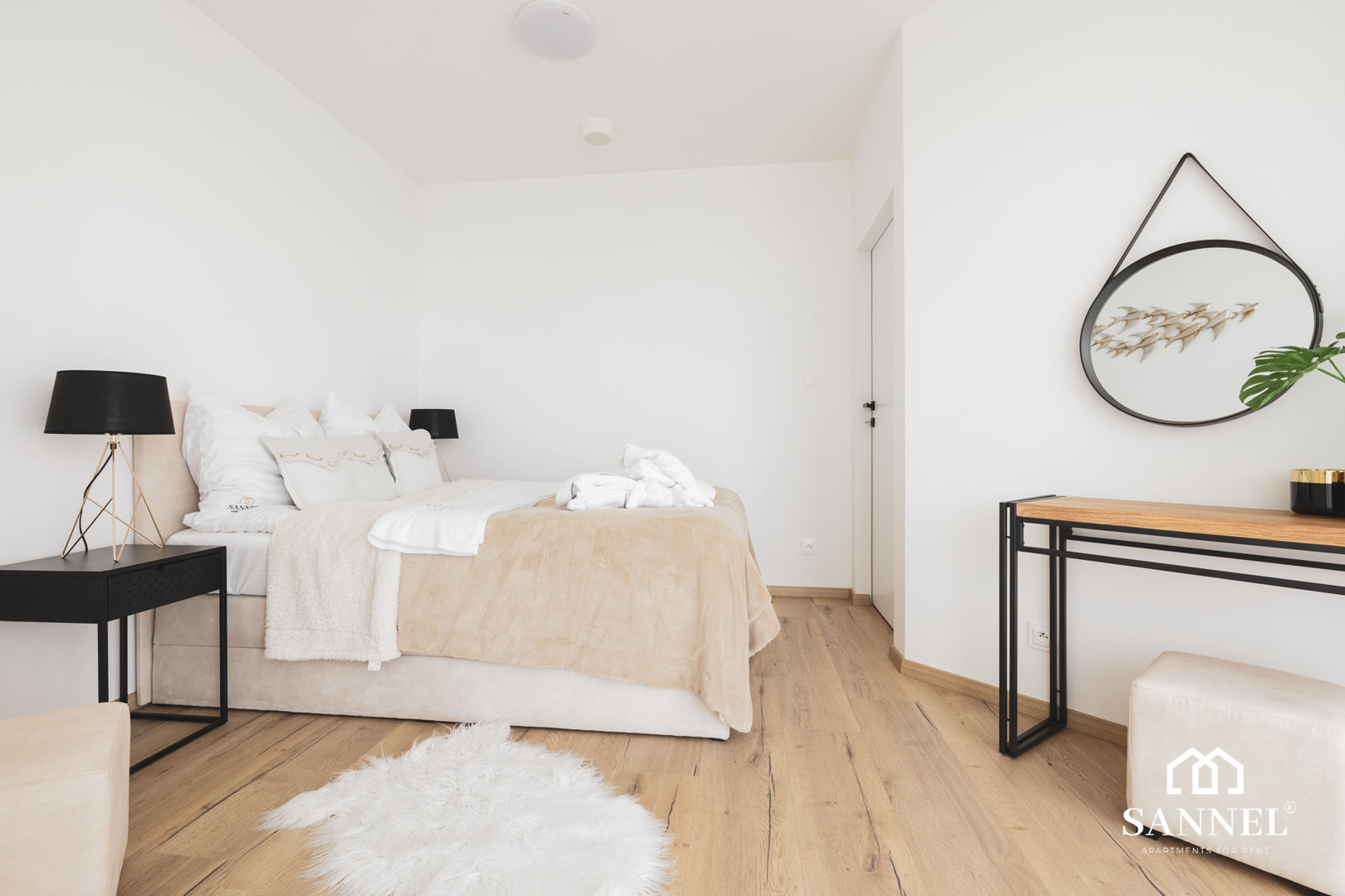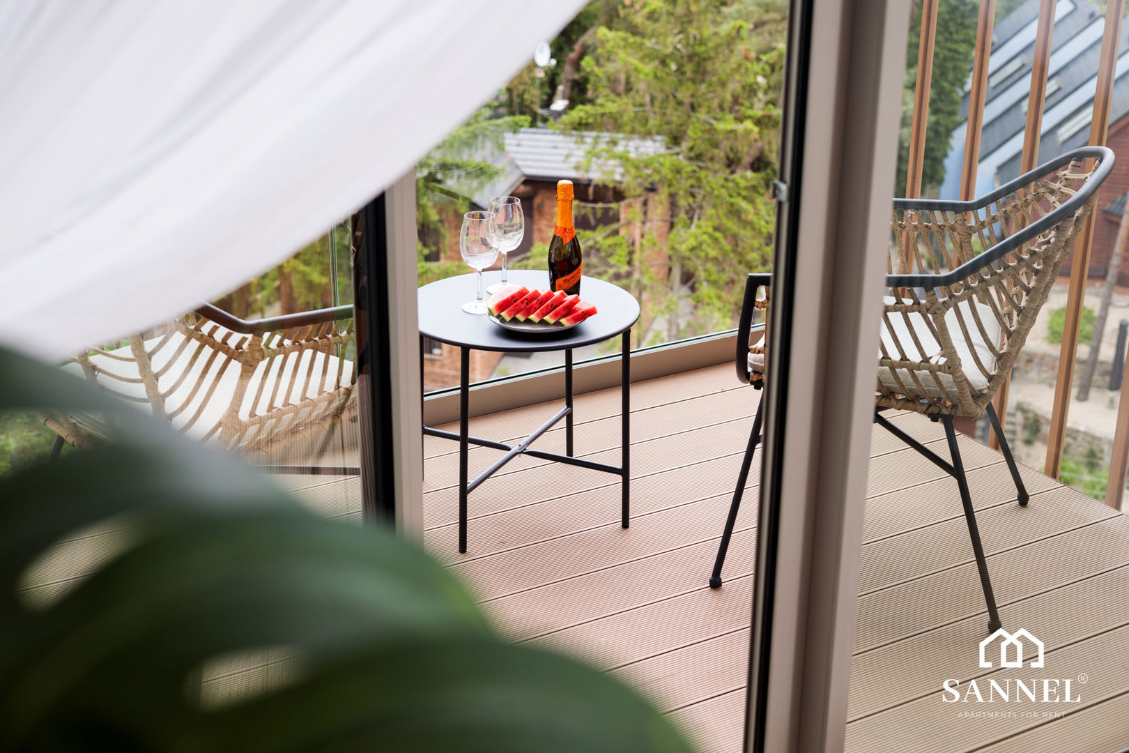 Niewątpliwym atutem apartamentu jest oprócz jego wyjątkowego deasignu i funkcjonalności, możliwość korzystania z dwóch balkonów z pięknym widokiem na morze o każdej porze dnia. Jest to apartament który z pewnością zachwyci i sprosta wymaganiom nawet najbardziej wymagającego gościa.