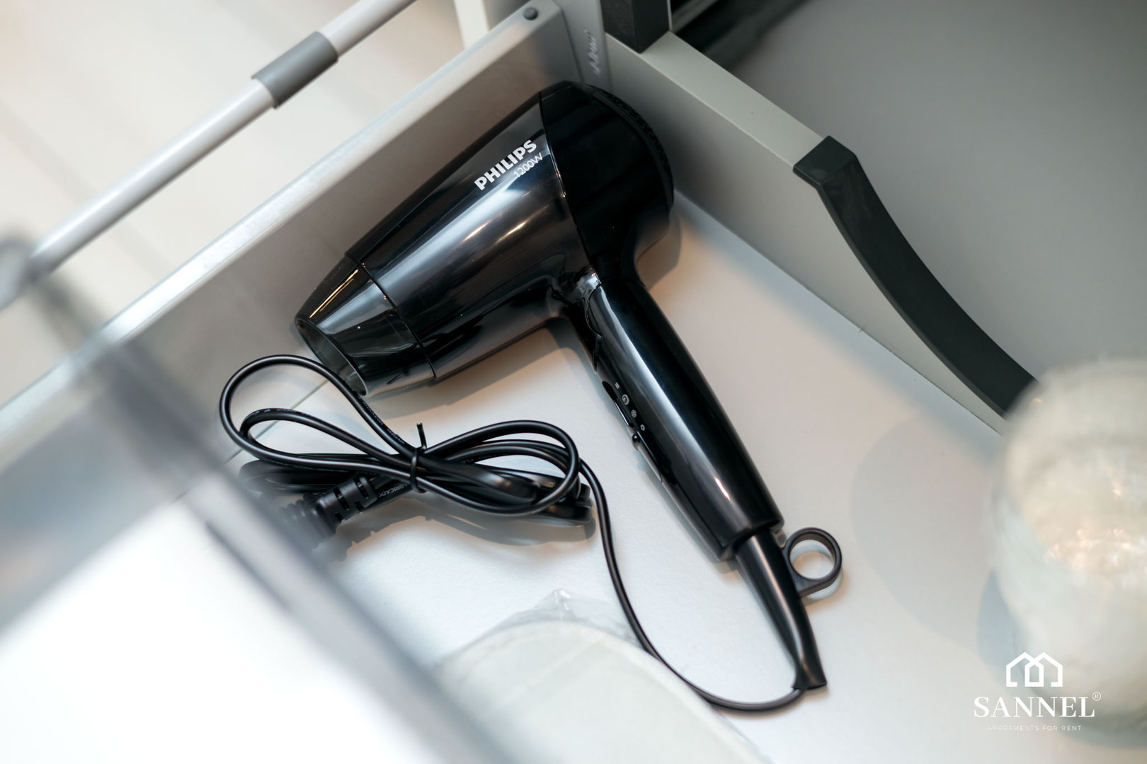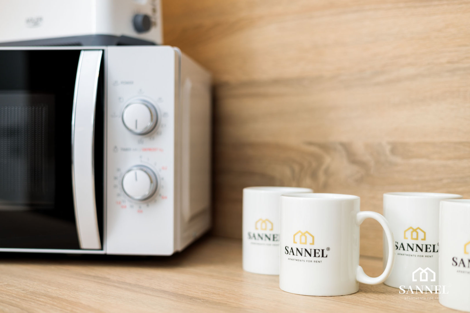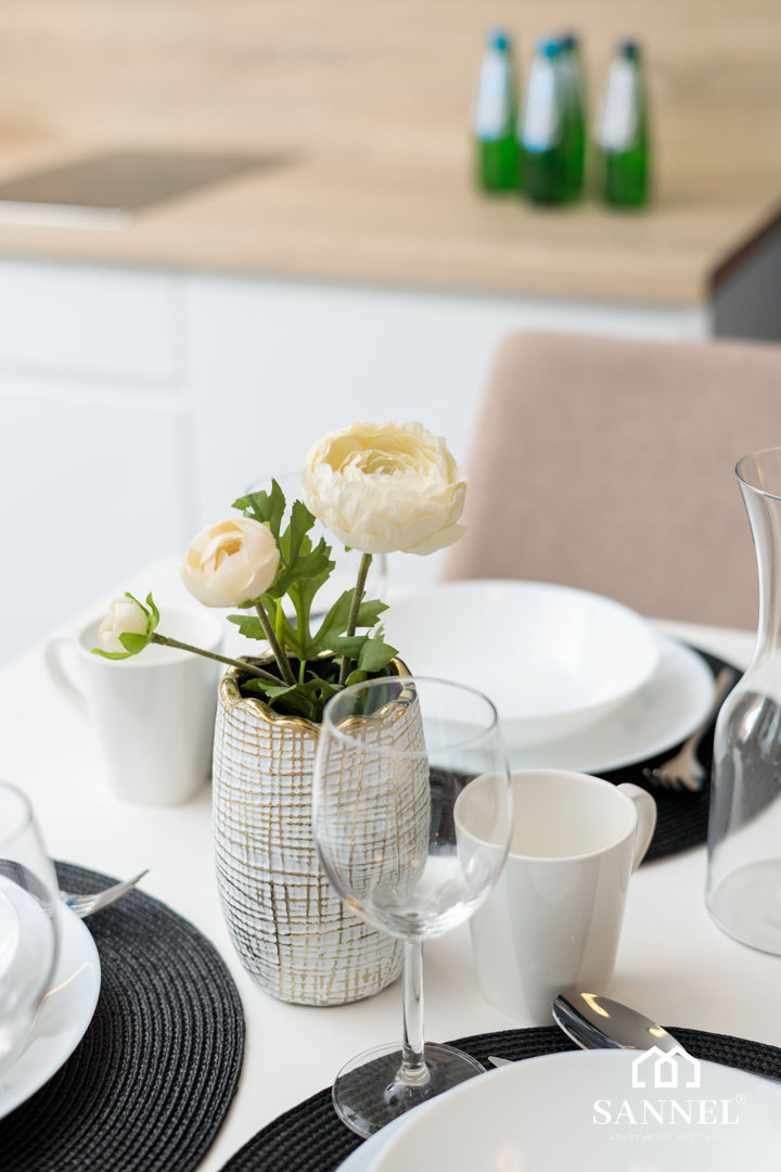 Usytuowany jest na pierwszym piętrze trzypiętrowego budynku z windą od strony wschodniej z widokiem na las. Składa się z salonu z aneksem kuchennym z wydzielonym miejscem do spożywania posiłków, sypialni, łazienki oraz przestronnego, dużego balkonu. Salon wyposażony został w sofę z funkcją spania, stolik kawowy, komodę, TV z płaskim ekranem z dostępem do kanałów kablowych, internetu oraz platform streamingowych. W tym pomieszczeniu znajduje się także stół z krzesłami do spożywania posiłków. Z salonu można wyjść na duży balkon gdzie znajduje się stół z krzesłami. Aneks kuchenny apartamentu Sunny Dune wyposażony został we wszystkie potrzebne sprzęty AGD takie jak czajnik elektryczny, ekspres do kawy, dwupalnikową płytę indukcyjną, toster, mikrofalówkę oraz wszelkie niezbędne akcesoria, potrzebne do przygotowania posiłków. Przestronna sypialnia posiada duże łóżko małżeńskie z oświetleniem do czytania, szafki oraz pojemną szafę do przechowywania ubrań. W łazience znajduje się duża kabina prysznicowa, umywalka z szafką, wiszące szafki, toaleta a także pralka.