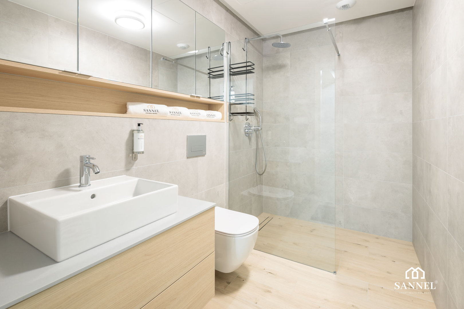 White Island składa się z salonu z aneksem kuchennym z wydzielonym miejscem do spożywania posiłków, sypialni, łazienki oraz dwóch balkonów. Salon wyposażony został w dwie sofy z funkcją spania, stolik kawowy, dwie komody do przechowywania a także TV z płaskim ekranem z dostępem do kanałów w różnych językach, z dostępem do internetu oraz platform streamingowych. W tym pomieszczeniu znajduje się duży,rozkładany stół z krzesłami do spożywania posiłków. Aneks kuchenny apartamentu White Island wyposażony został we wszystkie potrzebne sprzęty AGD takie jak toster, czajnik elektryczny, ekspres do kawy, płyta indukcyjna dwupalnikowa, mikrofalówkę oraz akcesoria, potrzebne do przygotowania posiłków. W aneksie umieszczona została także pralka. Przestronna sypialnia posiada duże łóżko małżeńskie wraz ze stolikami nocnymi,pojemną szafę do przechowywania ubrań a także toaletkę. W łazience znajduje się prysznic z odpływem liniowym, umywalka z blatem i szafką, wiszące szafki z półkami oraz toaleta.